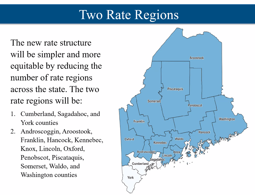 OCFS’s cost analysis showed little difference across Maine counties in the cost of providing care – 10% for family child care and 5% for child care centers. However, reimbursement rates in some parts of the state have been 45% lower than in others. OCFS could have moved to a flat state rate, but decided a shift to two regions would help to reduce geographic rate disparities without be to significant a change at this time.