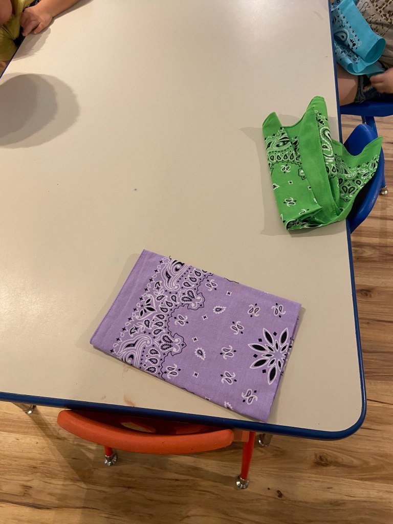 Playdough floor mats – made from cut sections of dry erase board (3/16″thick) edged with duck tape