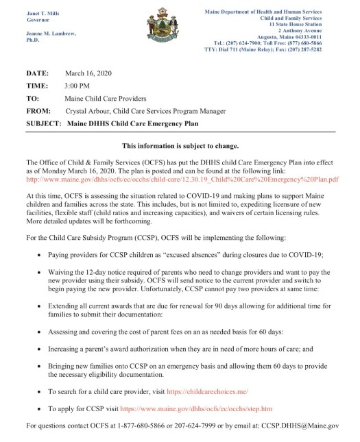 Guidance for CCSP Programs Guidance for CCSP Programs (3/16/20) Posted DHHS Child Care Emergency Plan direct link Share this: Click to share on Facebook (Opens in new window) Facebook Click to share on X (Opens in new window) X More Click to email a link to a friend (Opens in new window) Email Click to print (Opens in new window) Print Click to share on Pinterest (Opens in new window) Pinterest Click to share on LinkedIn (Opens in new window) LinkedIn Click to share on Tumblr (Opens in new window) Tumblr Click to share on Pocket (Opens in new window) Pocket