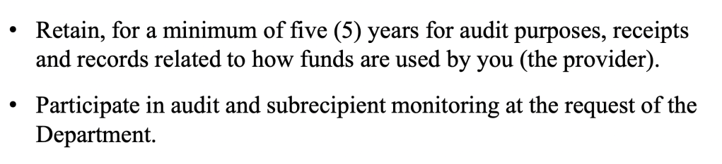 Below are some of the key notes around dates and grant totals. Check the linked August 3rd memo above for guidance on how you can spend funds, staff bonus guidance, and eligibility requirements.